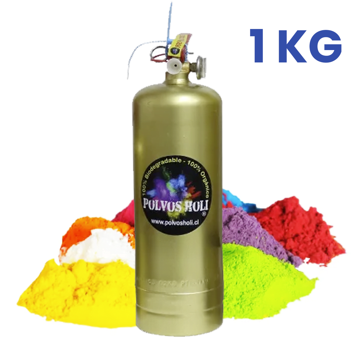 • Contenido: Extintor de 1 kilo relleno con Polvo Holi a elección.